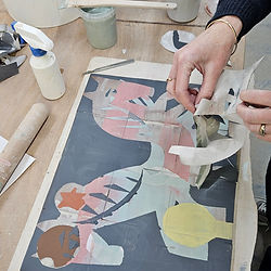 Join artist and designer Emma Carlow at the studio for this fantastic two-day workshop creating a tile panel decorated using slip and stencils. Composed of 15 tiles, your panel might become the perfect splash back for your sink or cooker or a beautiful standalone artwork. On day one we'll make our tiles and work on a series of small tests practicing ways to work with slip. Slip is liquid clay coloured with ceramic stains and/or oxides which can be opaque or have some translucency depending on how it is mixed and applied. We'll plan our designs and get the foundation colour applied to our panel. On day two we'll cut and apply masks and stencils to the panel to build up layers of colour, shape and pattern before adding details with sgraffito and slip trailers. Emma has been super busy this year with exhibitions of her wonderful clay whistles, recently at Meiklejohn Gallery in Lewes with a collection of small clay statues and ceramic whistles in celebration of the threatened farmland surrounding the village of Hamsey in East Sussex.